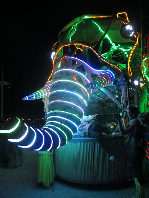 At night we would explore the playa (open desert festooned with sculptures) on illuminated bikes.